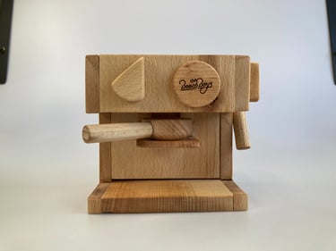 "Design a beech wooden childrens toy to engage children in adult things or somthing. this coffeemakers enables children to make their little coffee just like their parents, yayy."